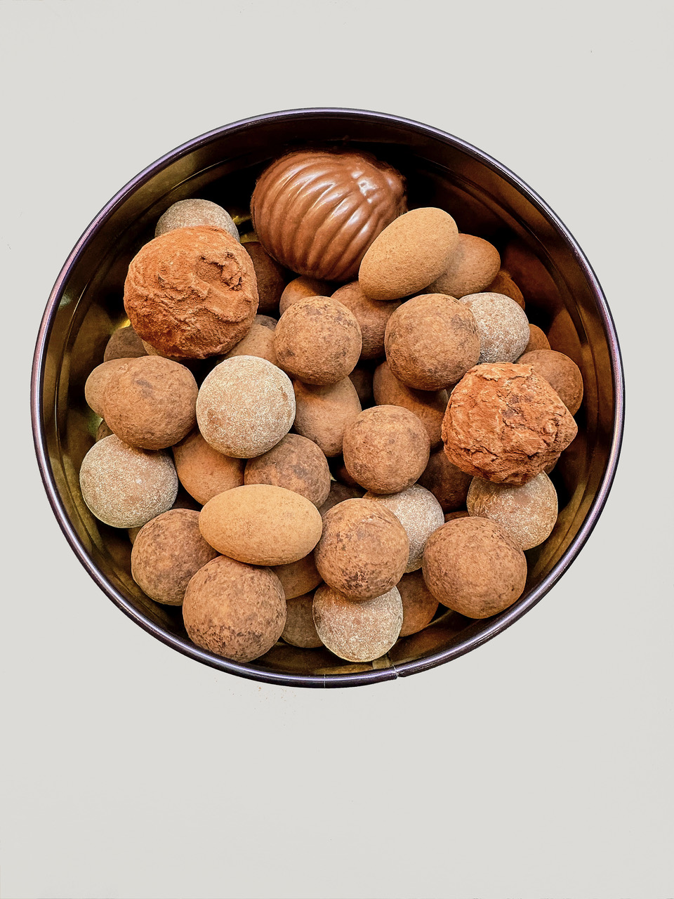 Découvrez notre assortiment gourmand signature composé de nos truffes royales, truffes croustillantes, escargots praliné ainsi que de nos amandes cacaotées !
