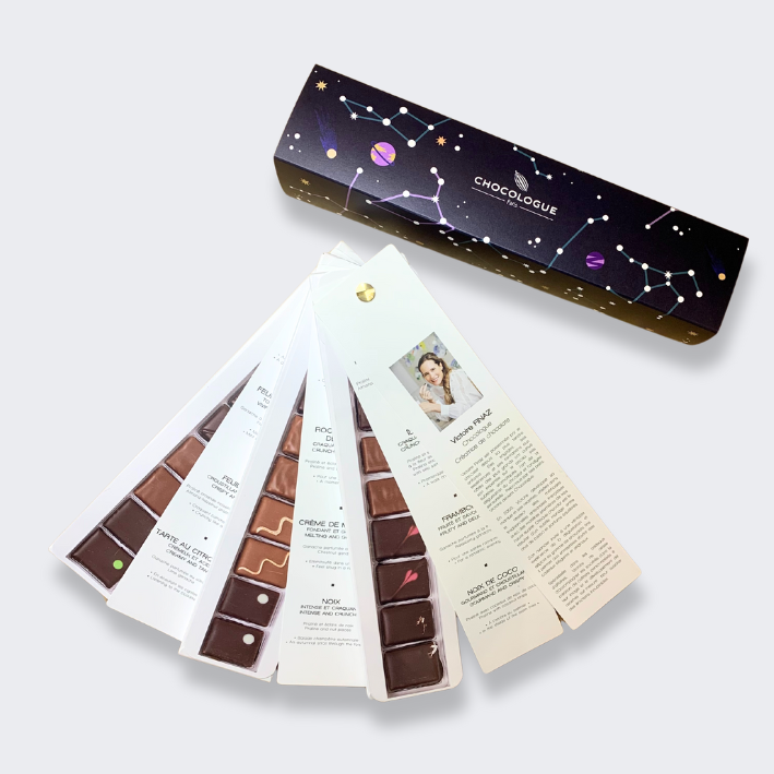 Le nuancier est le coffret phare de la Maison. Il se déploie comme un éventail. Victoire vous guide grâce aux descriptifs de ses recettes, pour une véritable initiation à la dégustation.